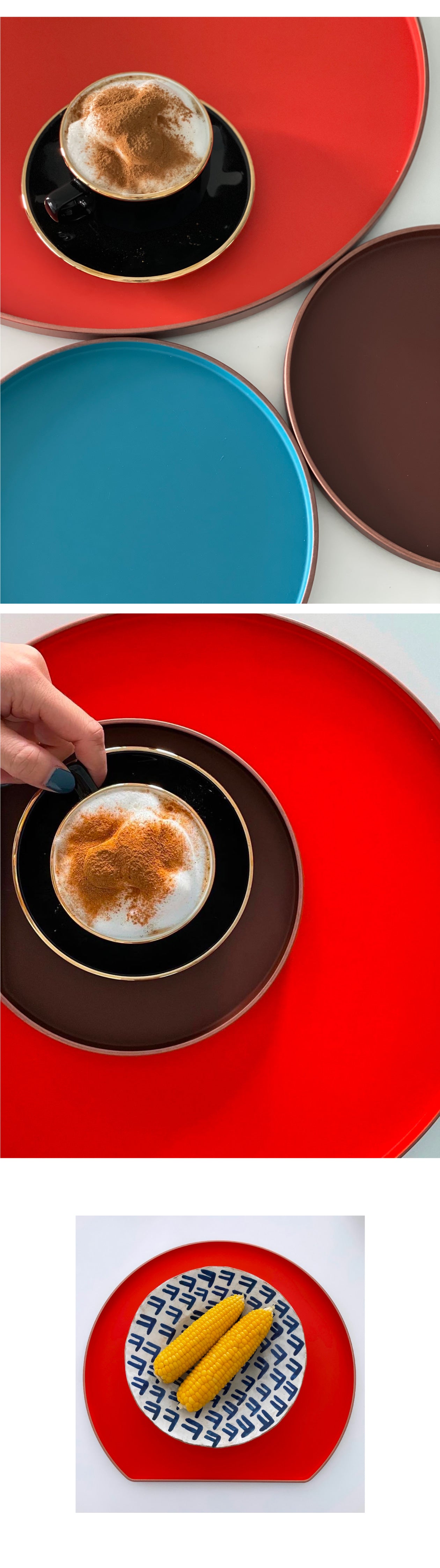 Lacqraft’s trays and plates use ABS plastic with food-safe lacquer coating.