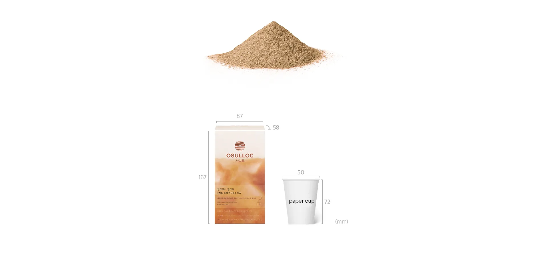 Ingredients : Milk creamer (sugar, hydrogenated vegetable oil, sodium caseinate [milk]), black tea powder (Jeju, Korea), flavor (bergamot extract), stabilizer, natural flavoring.