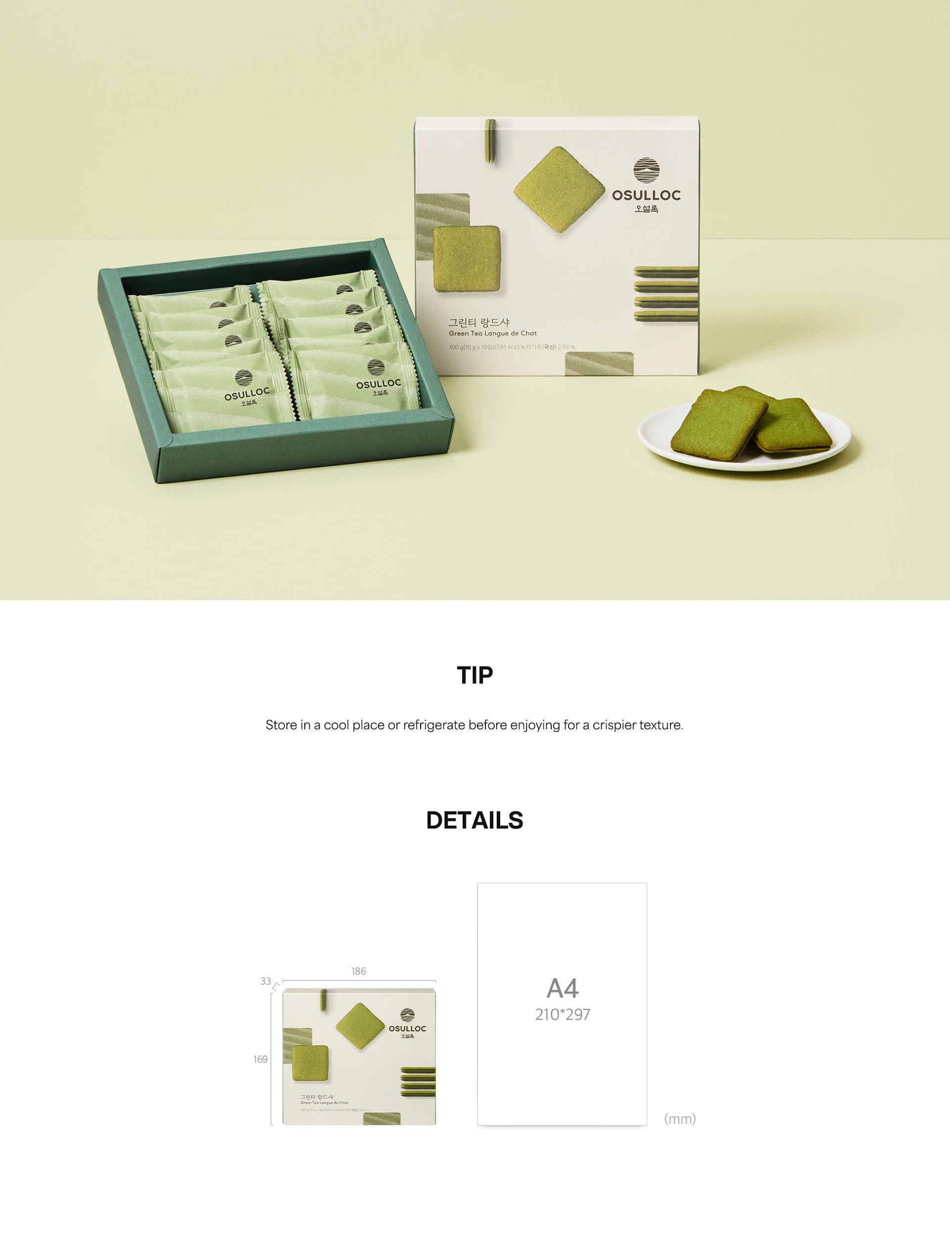 A delightful langue de chat cookie with a crispy, soft bite, filled with rich matcha cream and the savory taste of butter.